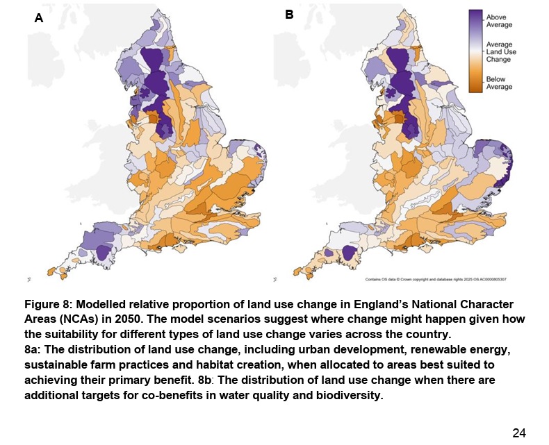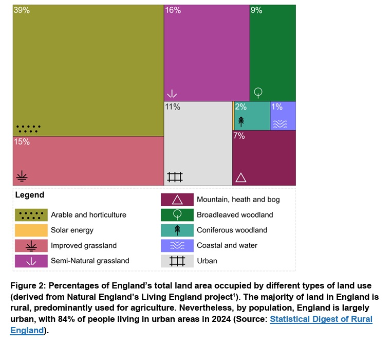 The message from this first go at a Land Use Framework (an update is promised in five years) is that we have many of the right notes but not in the right places (to nod to Eric Morecambe). The unspoken elephant in the framework is that this is a result of individual choices by thousands of landowners who are all, understandably, working in ways that suit them and their families rather than society as a whole. We have solar farms spread over prime agricultural land because it suits the land owner more than wheat production, and we have quite a lot of land uses because they are traditional and some farmers are a conservative bunch (with a small ‘c’, although strangely attracted to Reform without a small ‘r’ it seems). Quite how we get many more people to do sensible things is not really spelled out here. I have an idea, but I’ll come back to that.