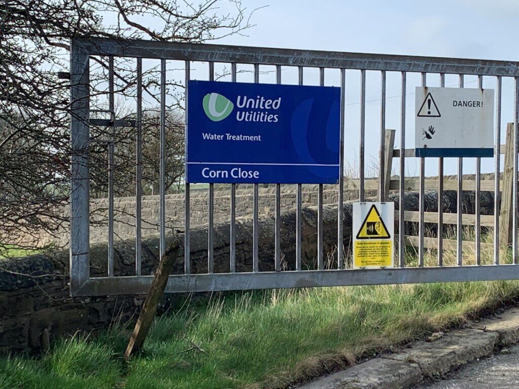 The bypass would leave the A6068 parallel to a concrete track track serving the United Utilities Corn Close water treatment works. UU have the Lancashire side of the watershed; at the other end of the bypass is Watersheddles Reservoir, owned by Yorkshire Water.