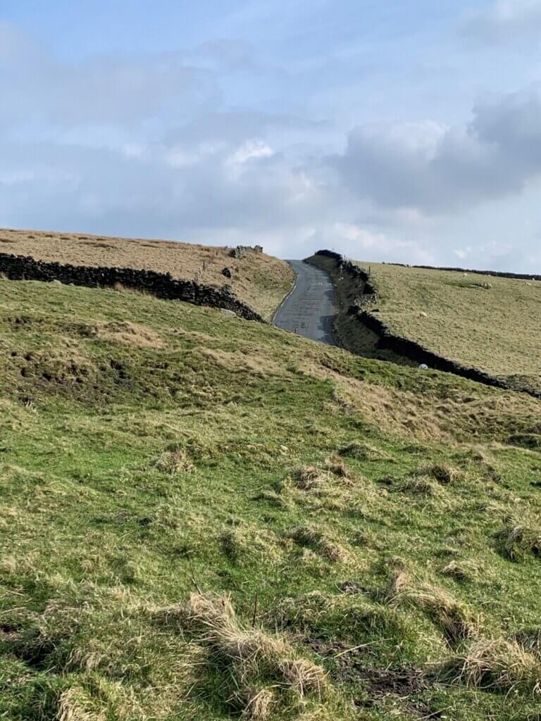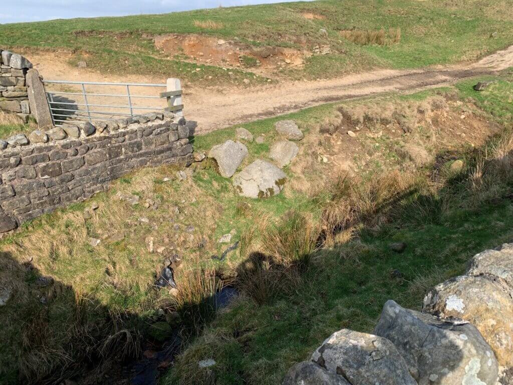Now the bypass contours across the grazing (behind the camera) until it meets the public road at the bridge over Ratten Clough.